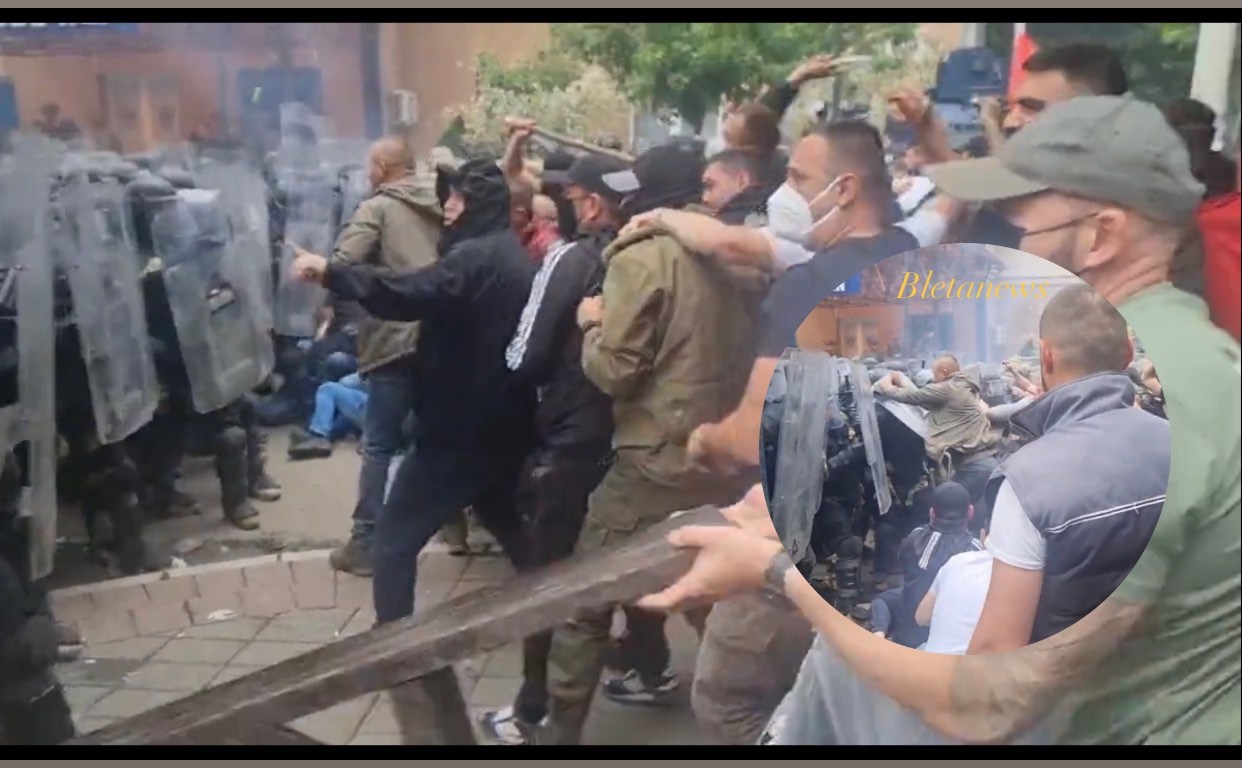 Trupat e misionit paqeruajtës të NATO-s në Kosovë, KFOR, kanë ndërhyrë ndaj protestuesve serbë, të tubuar para ndërtesës së komunës së Zveçanit.