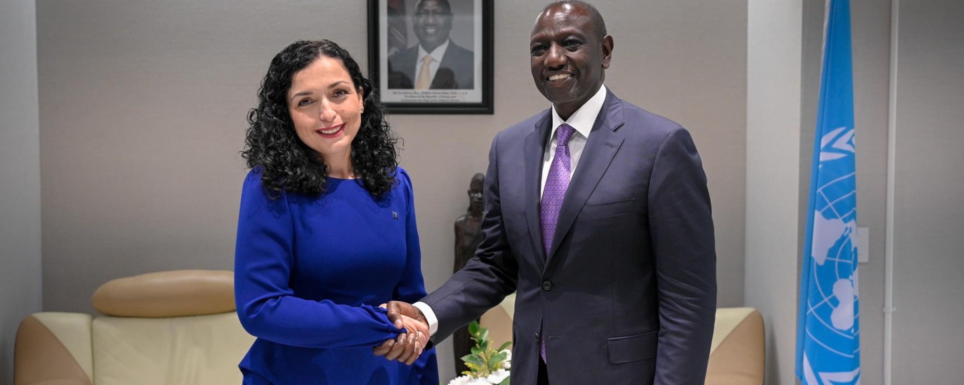 Presidentja e Kosovës, Vjosa Osmani, e cila po qëndron në New York ku po mbahet sesioni i 78-të i Asamblesë së Kombeve të Bashkuara, ka zhvilluar një takim me presidentin e Kenias, William Ruto.