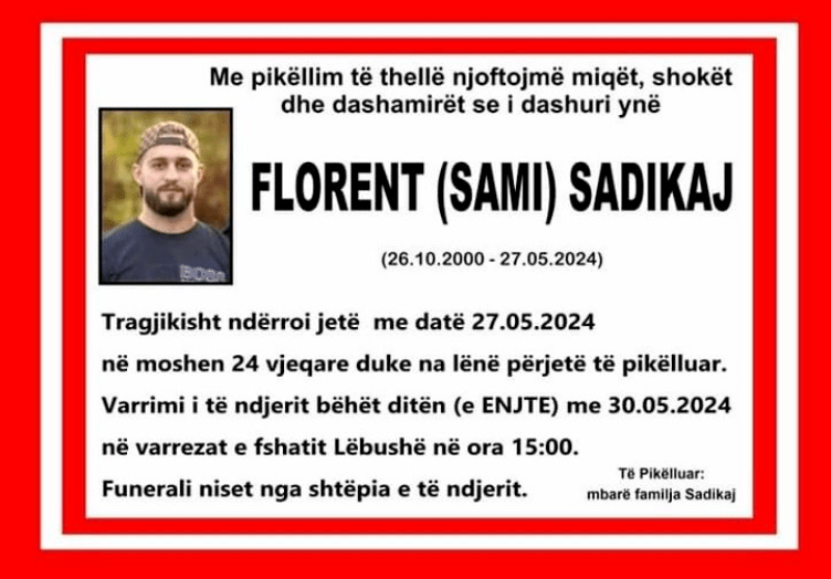 Florent Sadikaj, 24 vjeçari nga Lëbusha e Deçanit, ka humbur jetën tragjikisht në vendin e tij të punës në Zvicër.