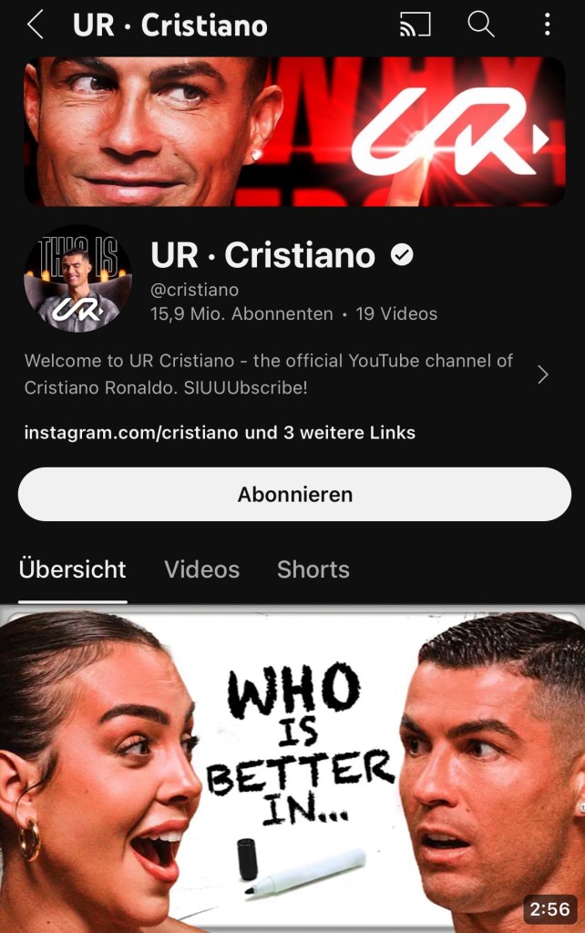Në këtë kanal, Ronaldo do të publikoj video interesante nga jeta e tij së bashku me gruan dhe familjen që sigurisht do të ketë një interesim të jashtëzakonshëm.