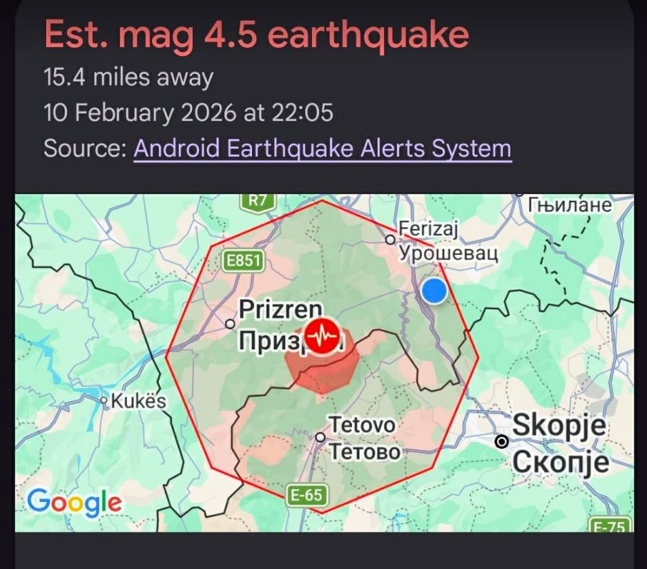 Ndërkohë, burimet raportojnë se epiqendra e tërmetit është lokalizuar në Prizren, ku sipas matjeve të fundit, fuqia e goditjes ka arritur në 4.6 ballë.